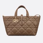D.I.O.R. charms , Removable interior pouch , Adjustable leather top handles, Dust bag included , Calfskin lining , Double closure: a thin lace-through strap and a Christian Dior Paris strap with a CD Lock clasp