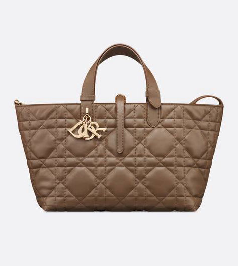 D.I.O.R. charms , Removable interior pouch , Adjustable leather top handles, Dust bag included , Calfskin lining , Double closure: a thin lace-through strap and a Christian Dior Paris strap with a CD Lock clasp