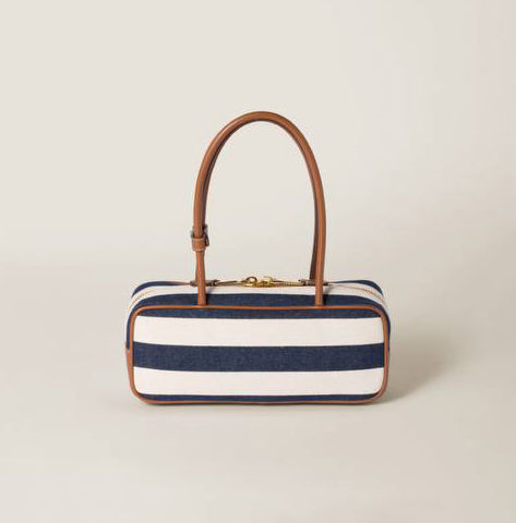 Gold-tone hardware, Zipper closure, Linen blend interior with double zipper pocket , Leather handles