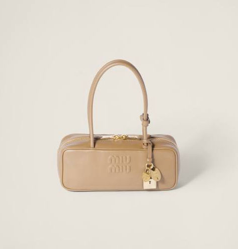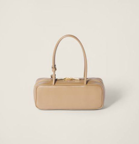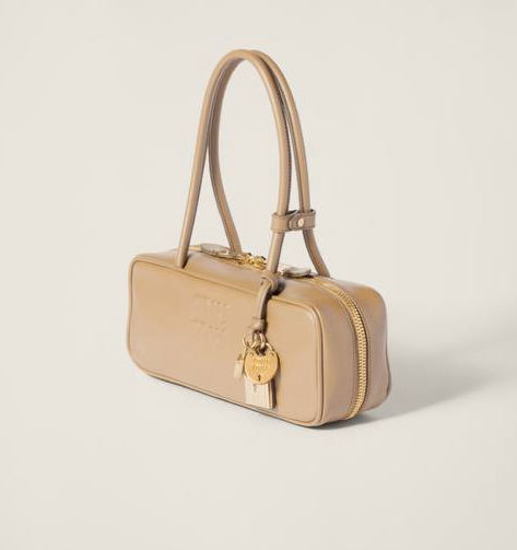 Gold-tone hardware , Zipper closure , Cotton satin lining with zipper pocket , Leather handles , Removable trick