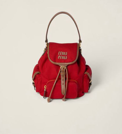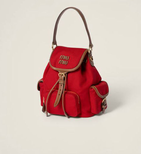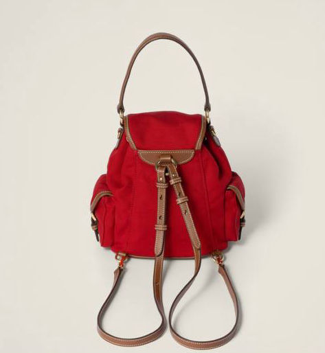 Leather handle ,Front zipper pocket , Side flap pockets ,Gold-tone hardware , Flap closure with buckle , Linen blend interior with patch pocket
