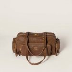 Side zipper pockets ,Gold-tone hardware, Zipper closure , Cotton lining with zipper pocket,Embossed lettering logo on the front