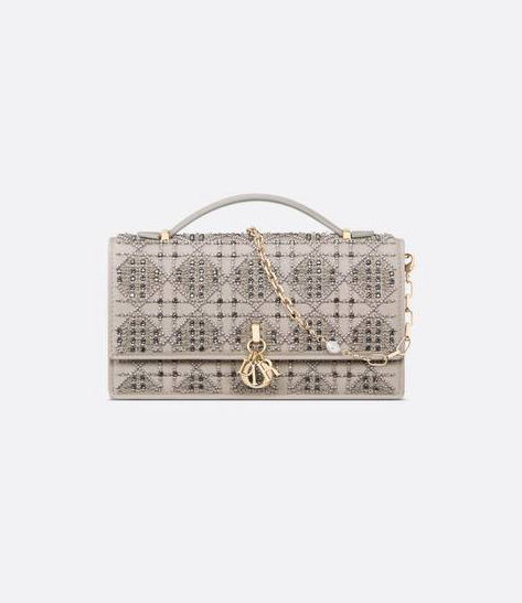 Gray Cannage Embroidered Calfskin with Beads and Crystals