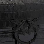 Love Bag small crossbody bag in crocodile-print leather with a black patent finish.