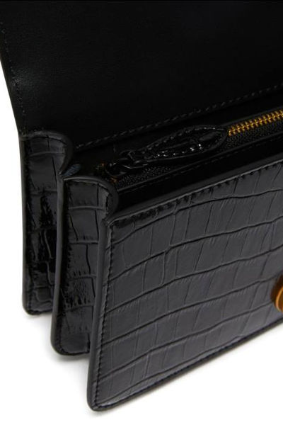 Love Bag small crossbody bag in crocodile-print leather with a black patent finish.