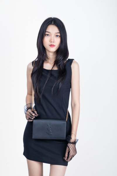 YSL Belle de Jour Black Leather Large Clutch With Chain