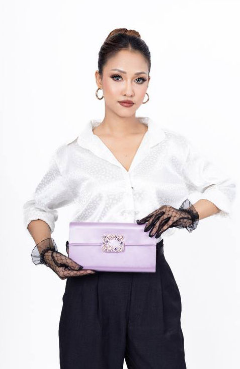 · Designer color name: Silk Violet · Internal details: fabric lining · Chain shoulder strap · Closure: magnetic fastening