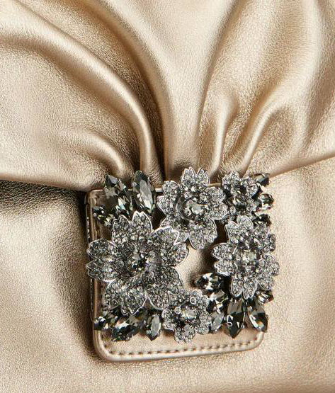 Calfskin leather , Metallic finishing , Removable handle , Metal chain strap , Crystal buckle , Magnetic button closure