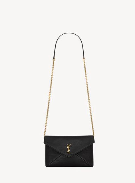 SAINT LAURENT CASSANDRE CHAIN POUCH IN SHINY LEATHER