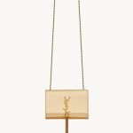 THE ICONIC KATE BAG IN METALLIC LEATHER, FEATURING THECASSANDRE AND CHAIN TASSEL.