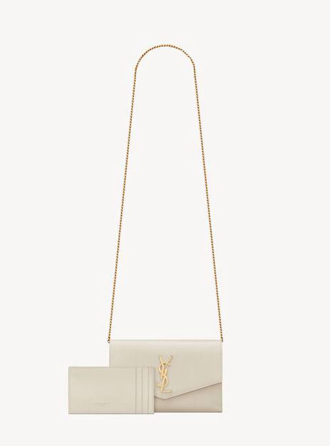 LEATHER LINING GOLD-TONED BRASS HARDWARE MAGNETIC SNAP TAB INTERIOR SLOT POCKET DIMENSIONS: 19 X 12 X 3 CM / 7.5 X 4.7 X 1.2 INCHES CHAIN LENGTH: 48 CM / 18.9 INCHES 100% CALFSKIN LEATHER