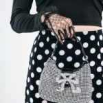 Made from tulle and glossed-leather, it’s doused in glistening crystals and topped with a sweet, sculpted bow.