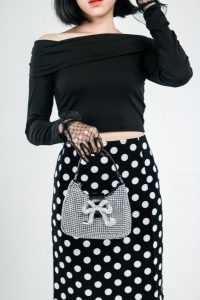 It’ll fit your phone, cardholder and compact for quick and easy touch-ups throughout the evening.