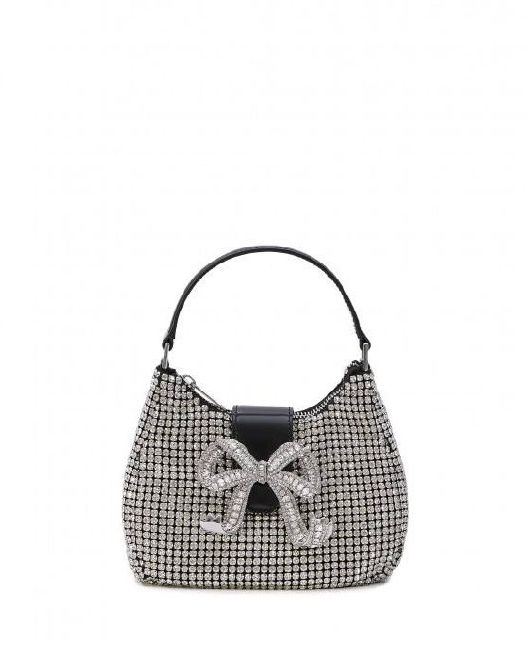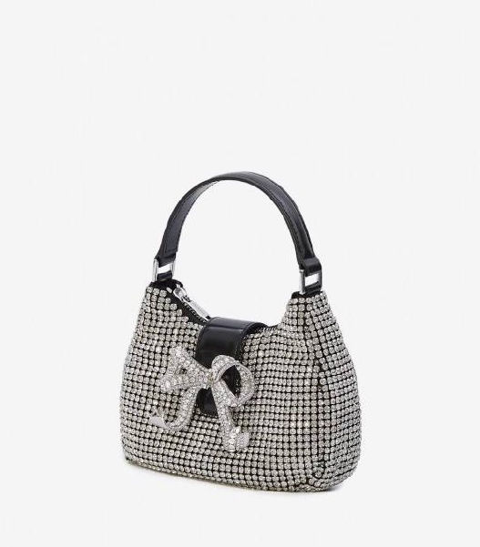 Made from tulle and glossed-leather, it’s doused in glistening crystals and topped with a sweet, sculpted bow.