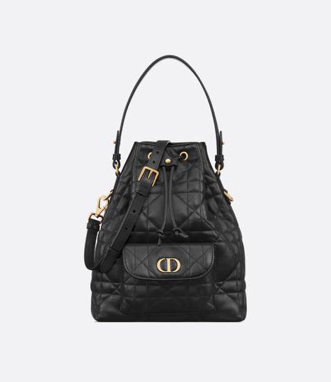 Interior slip pocket Removable leather top handle , Adjustable and removable leather shoulder strap, Dust bag included Calfskin lining, CD signature on the front , Drawstring closure , Main composition: lambskin and calfskin