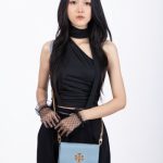 TORY BURCH Crossbody Bag Britten Chain Leather Wallet Bag in Blue Cloud