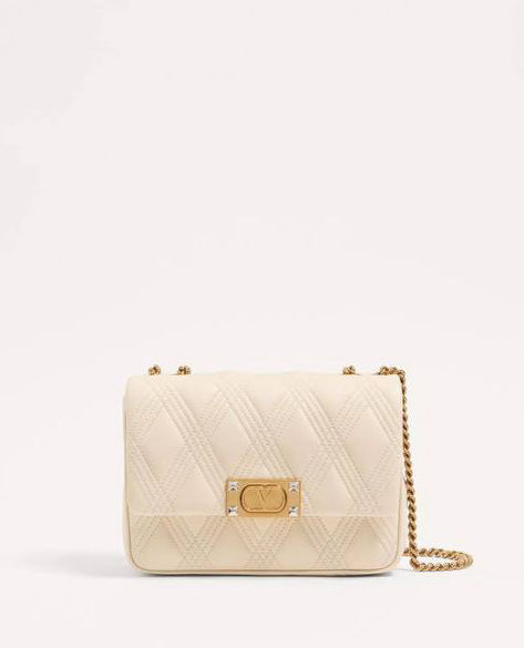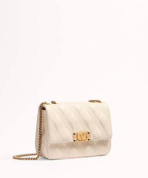 Nappa lining. Interior: slip pocket and one zip pocket , Closure features a VLogo Signature plaque in antique-brass finish, Chain drop length: min. 27 cm to max. 52 cm / min. 10.6 in. to max. 20.5 in.