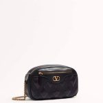 Nappa lining. Interior: three card slots , Exterior: slip pocket with zip, VLogo Signature metal element in antique brass finish , Zip closure , Hardware in antique gold finish, Chain drop length: 52 cm / 20.5 in.