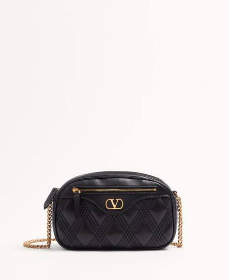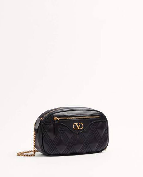Nappa lining. Interior: three card slots , Exterior: slip pocket with zip, VLogo Signature metal element in antique brass finish , Zip closure , Hardware in antique gold finish, Chain drop length: 52 cm / 20.5 in.