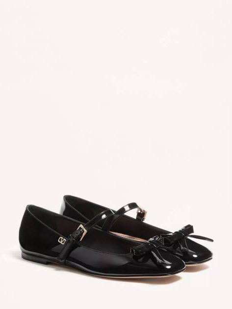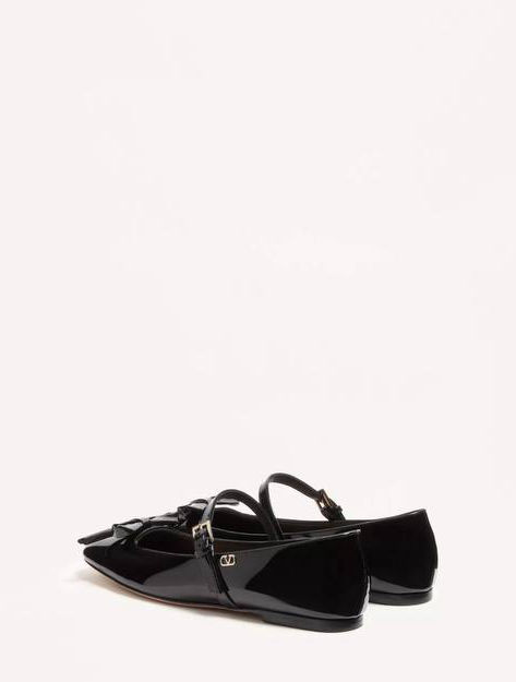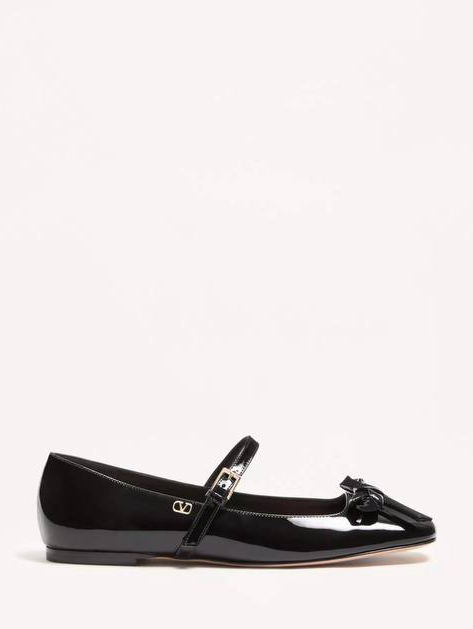 Adjustable buckle strap , Heel height: 05 mm / 0.25 in , Patent leather bow detail , VLogo Signature detail with antique-effect brass finish