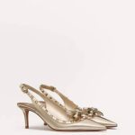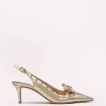 Laminated nappa leather straps and trim , Laminated nappa leather bow detail , Adjustable buckle strap