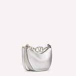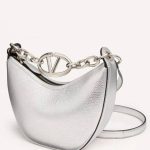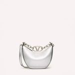 VALENTINO VLOGO MOON MINI HOBO BAG IN METALLIC GRAINY CALFSKIN WITH CHAIN