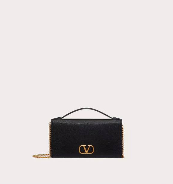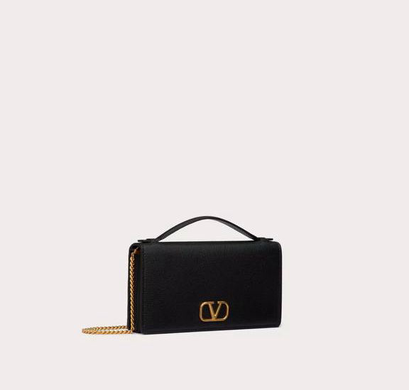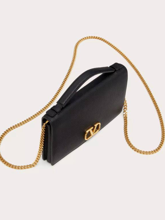 VALENTINO VLOGO SIGNATURE GRAINY CALFSKIN WALLET WITH CHAIN
