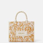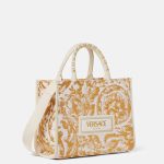 Interior zip pocket , Detachable and adjustable shoulder strap , Leather feet , Barocco pattern ’90s Vintage Logo patch , Top handles