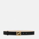 This belt is crafted from leather and features a Greca Goddess buckle. Greca Goddess buckle Belt loop Outer composition: 100% Calf leather Lining: 100% Calf leather Leather from tanneries certified to high levels of environmental performance