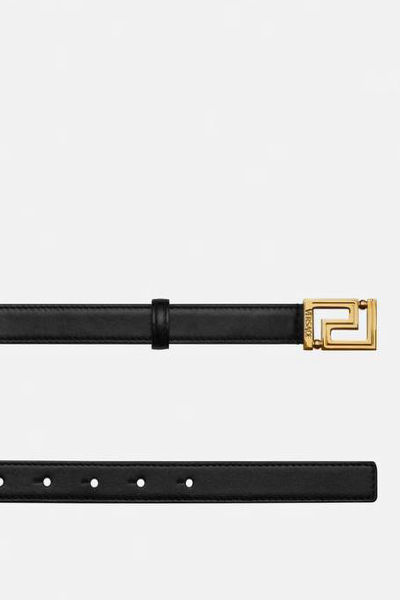 This belt is crafted from leather and features a Greca Goddess buckle. Greca Goddess buckle Belt loop Outer composition: 100% Calf leather Lining: 100% Calf leather Leather from tanneries certified to high levels of environmental performance