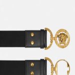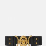 This elastic belt features a clic-clac Medusa and Greca-engraved buckle closure, detailed with leather finishes. Medusa hardware Greca engraving Clic-clac closure Outer composition: 100% calf leather Trim: 100% Nylon