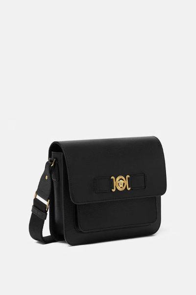 • Medusa Biggie hardware • Foldover flap • Magnetic closure • Front slip pocket • Interior card slots