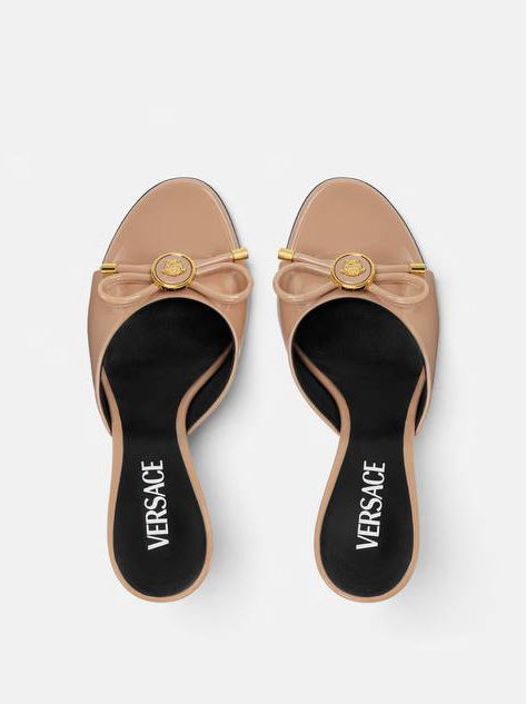 VERSACE OPERA BOW PATENT MULES 85 MM