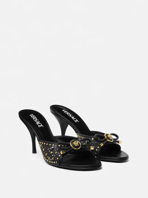 VERSACE STUDDED OPERA BOW MULES 85 MM