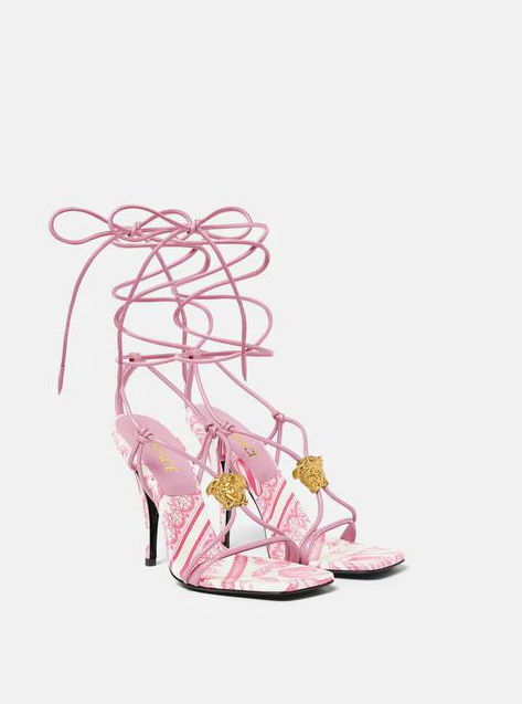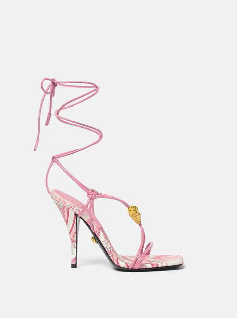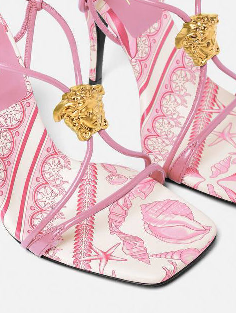 Squared toe , Stiletto heel , Self-tie closure , Underwater Barocco Allover print , La Medusa hardware , Heel: 11.5 cm