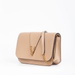 A stunning Versace crossbody shoulder bag from the UK BRANDED FASHION. This beige crossbody shoulder bag exudes luxury and opulence in every iconic detail. Crafted in Italy of beige pebbled calfskin leather with polished gold-tone hardware. Adorning the front flap is the iconic polished Virtus “V” emblem. With a snap closure, the Virtus crossbody opens to reveal a suede lined interior with single patch pocket. Dressed up or dressed down, this is the perfect luxurious little beige handbag!