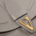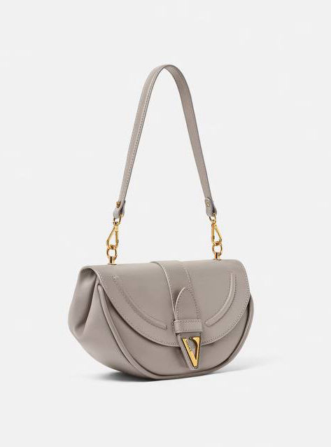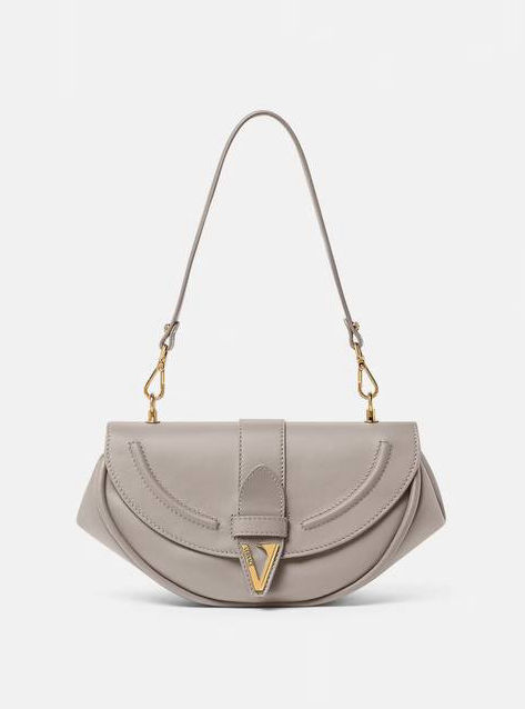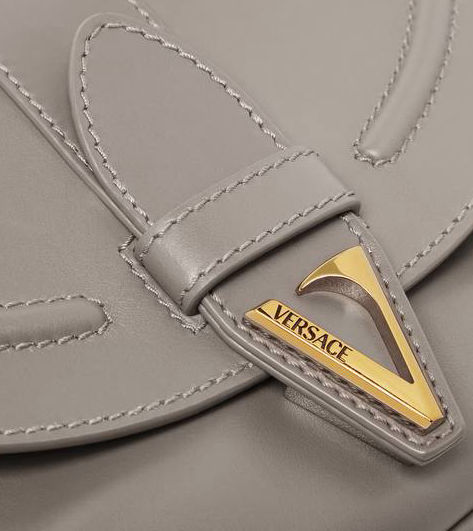 Foldover flap with magnetic closure , Interior slip pocket , V hardware , Versace Logo engraving , Detachable top handle